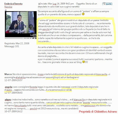 Passiamo all’ “amico” Paolo Politi! Volete leggere come è stato trattato un “amico” sempre sul suddetto sito, che ormai possiamo considerare la valvola di sfogo del Pdl Adrano? Leggete!