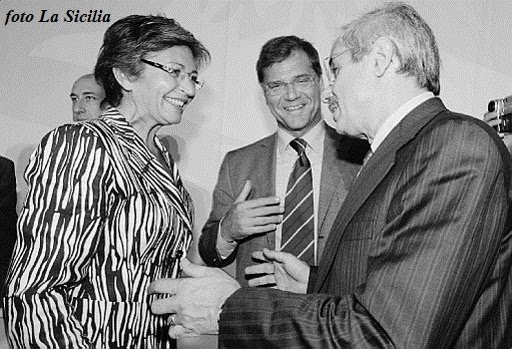 Settembre 2010. Tutto è cambiato (vedi foto a lato). Dopo due anni dalla sconfitta elettorale e dopo essere riparata nel dorato esilio di Palazzo Madama a Roma, durante i quali si è a dir poco disinteressata della Sicilia, Anna Finocchiaro cambia diametralmente opinione! La senatrice, presente alla festa dell’Mpa, benedice il quarto governo Lombardo accampando giustificazioni che lasciano il tempo che trovano. “Per me – dice – che sono stata avversaria di Lombardo, non e’stato semplice mettere a fuoco questo nuovo approccio che fosse del tutto politico. Il Pd ha deciso di dare l’appoggio esterno al governo Lombardo perche’ la giunta e’ fatta da persone serie e perbene”.